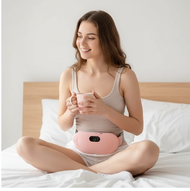 Persistent menstrual cramps often hinder your daily productivity and comfort. This wearable device offers targeted warmth and gentle massage.